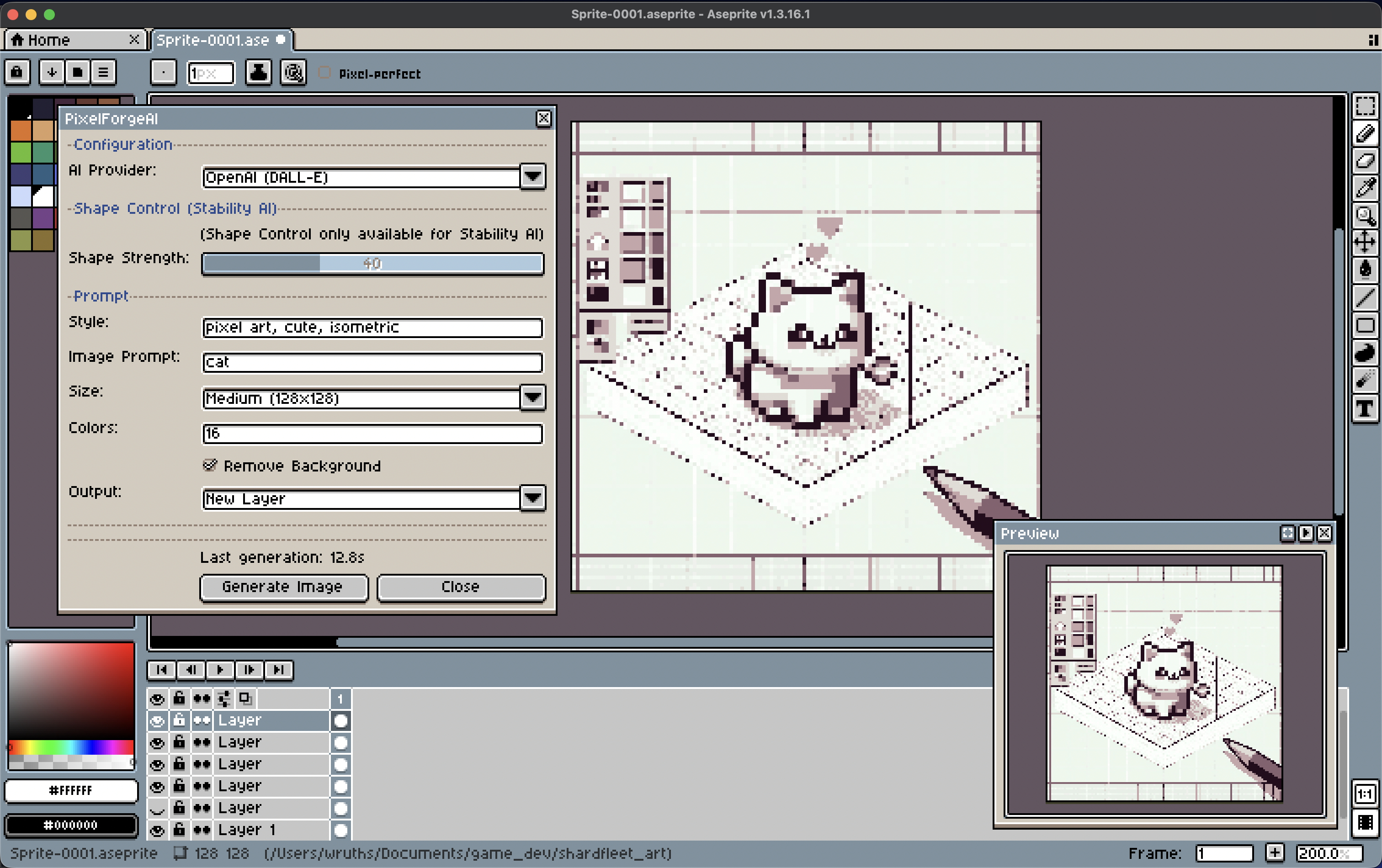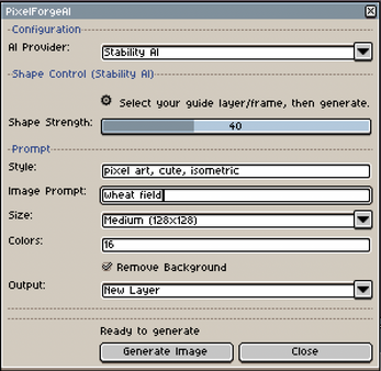 Transform your ideas into pixel art assets without leaving Aseprite! PixelForgeAI connects directly to DALL-E 3 and Stability AI to generate production-ready sprites, icons, and game assets.