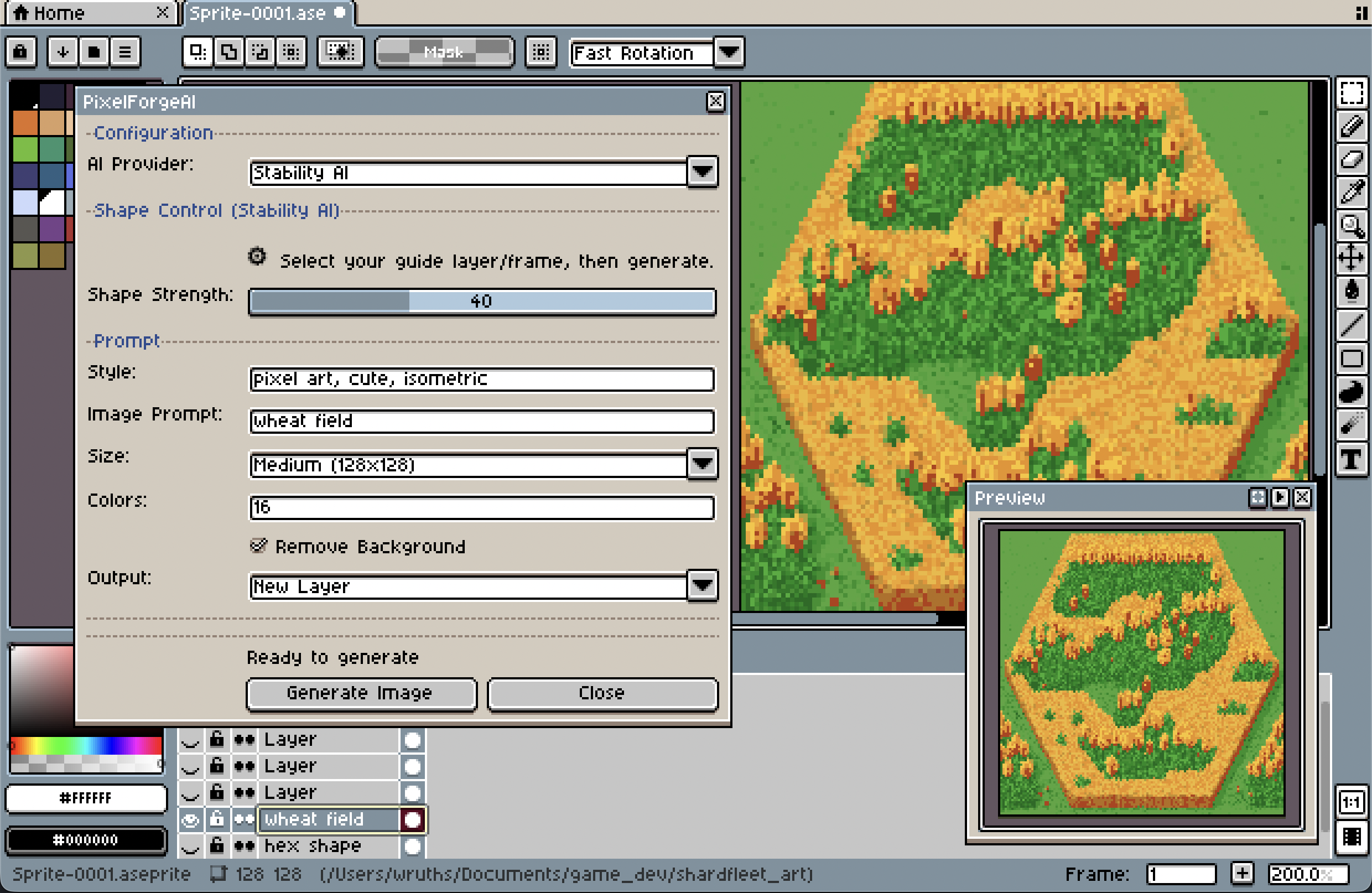 - Direct Integration — Results appear as new layers in your Aseprite project